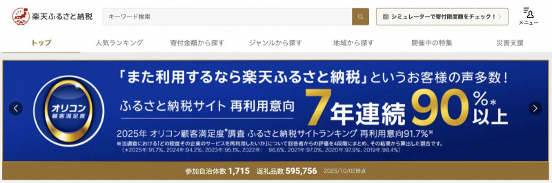 - 1位:楽天ふるさと納税(600超の限定品)