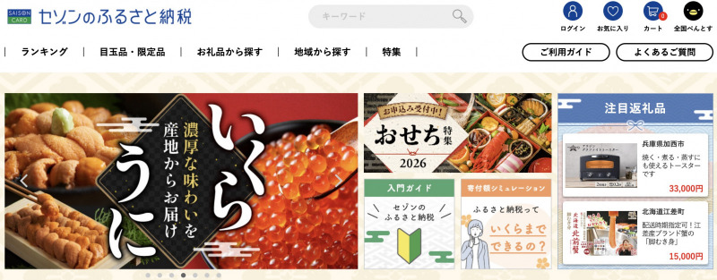 「ヤフーのふるさと納税」は掲載自治体数・返礼品数共にナンバーワンを誇っています。それに「セゾンのふるさと納税